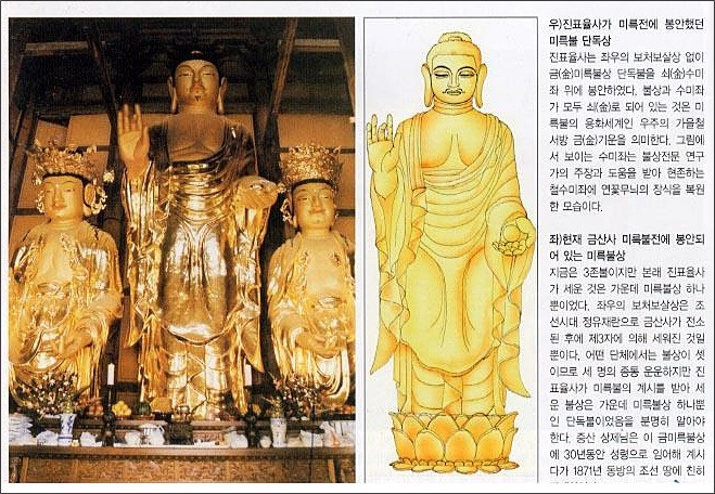 중 진표(眞表)가 석가모니의 당래불(當來佛) 찬탄설게(讚歎說偈)에 의거하여 당래의 소식을 깨닫고 지심기원(至心祈願)하여 오던 모악산 금산사 미륵금상에 임하여 30년을 지내면서