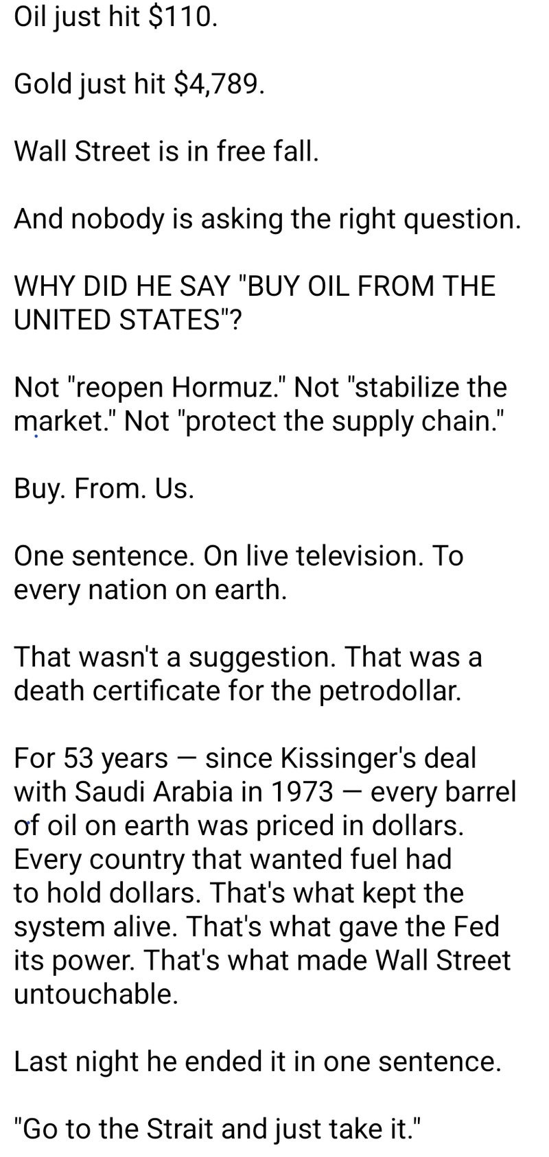왜 그가 '미국에서 원유를 사라'고 말했는지요?
