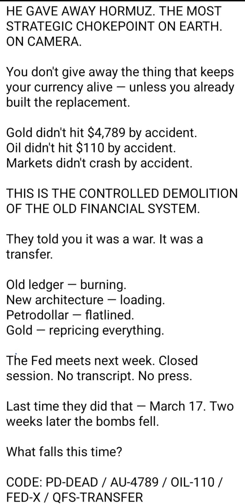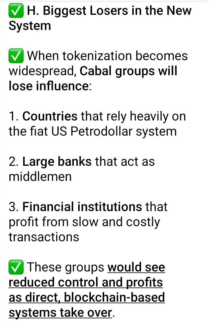 앞으로 도래할 토큰화 시스템이 그들 '카발(음모 세력)'이 지배하는 페트로달러 체제를 대체한다는 사실은 그들에게 매우 현실적인 위협이 됩니다.