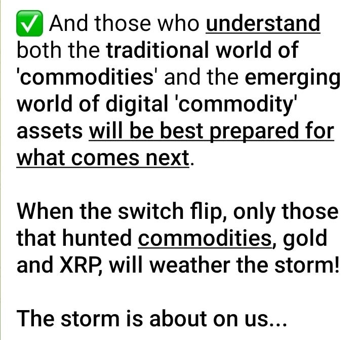 변혁의 스위치가 눌린 그 순간, 이 '현물 커머디티', 즉 금(골드)이나 XRP를 선견지명을 가지고 확보한 사람만이 밀려오는 격동의 거친 파도를 극복할 수 있습니다.
