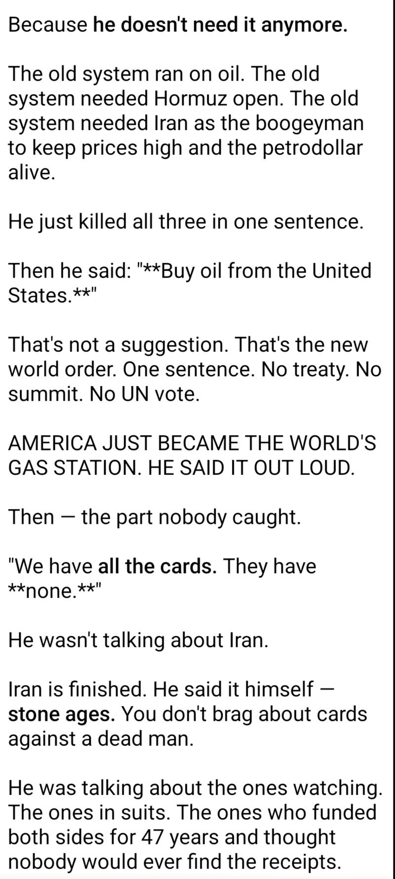 미국은 지금 세계의 '주유소'가 되었습니다. 그는 그것을 공개적으로 선언한 것입니다.