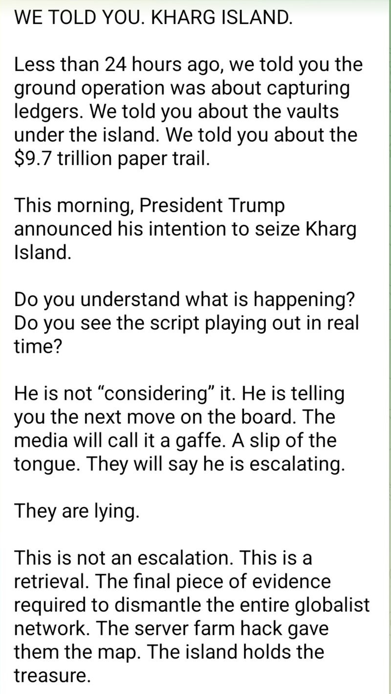 오늘 아침, 저희는 여러분께 전했을 것입니다. ‘그들이 하르그 섬을 표적으로 삼고 있다’고 합니다.