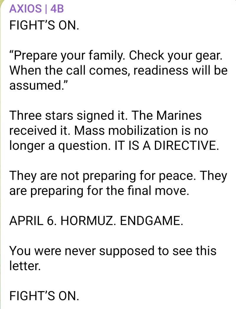 별 세개가 서명 했습니다. 해병대는 그것을 받았습니다. 대규모 동원은 더 이상 의문이 아닙니다. 이것은 지시입니다.