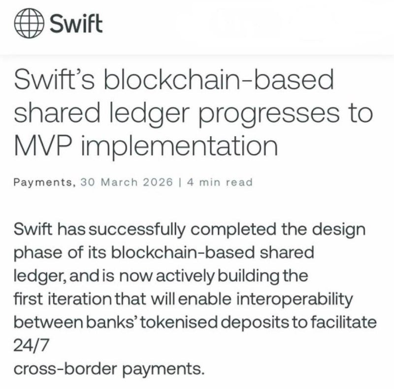 Swift의 블록체인 기반 공유 장부가 MVP 구현 단계에 진입했습니다