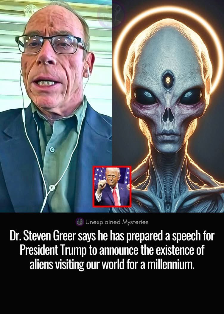 스티븐 그리어 박사는 도널드 트럼프 대통령이 외계인이 천년 동안 지구를 방문해 왔다는 사실을 발표하는 연설문을 준비했다고 밝혔습니다.