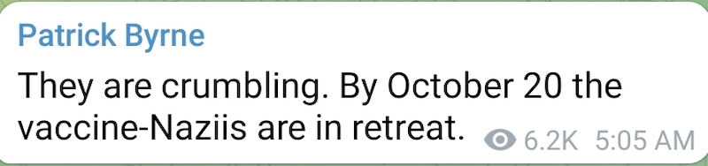 패트릭 번 씨는 현재 악마군이 점점 무너져 가고 있다고 쓰고 있어요. 10월 20일까지는 코로나 백신은 가짜 백신으로 들킨다고 합니다! 이게 사실이라면 대박이겠네요! 패트릭은 과거에 여러 번 제가 소개 드렸던 트럼프 캠프 관계자 중 한 명입니다.