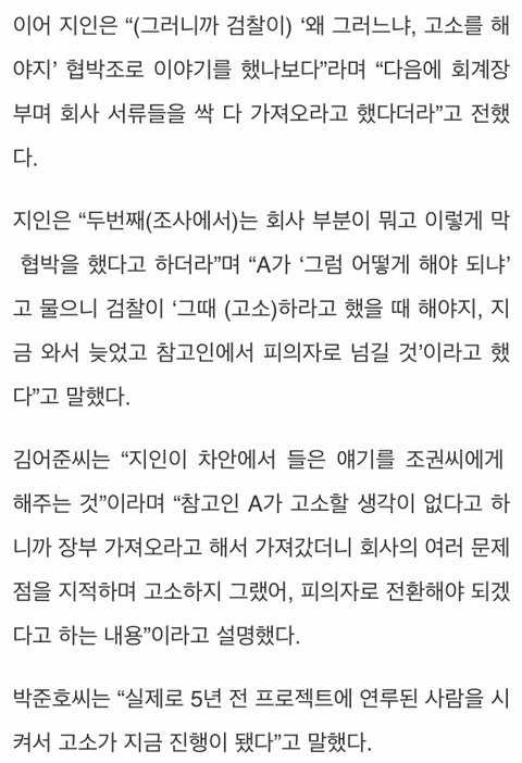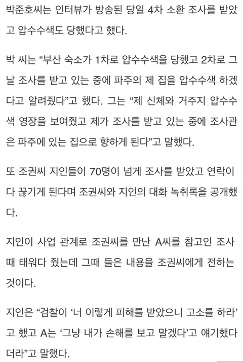 검찰의 모욕적인 행태의 수사방식을 폭로한 당일 검찰조사 다시 받고 압수수색을 받았음. 참고인들을 피의자 만들겠다는 협박은 덤.