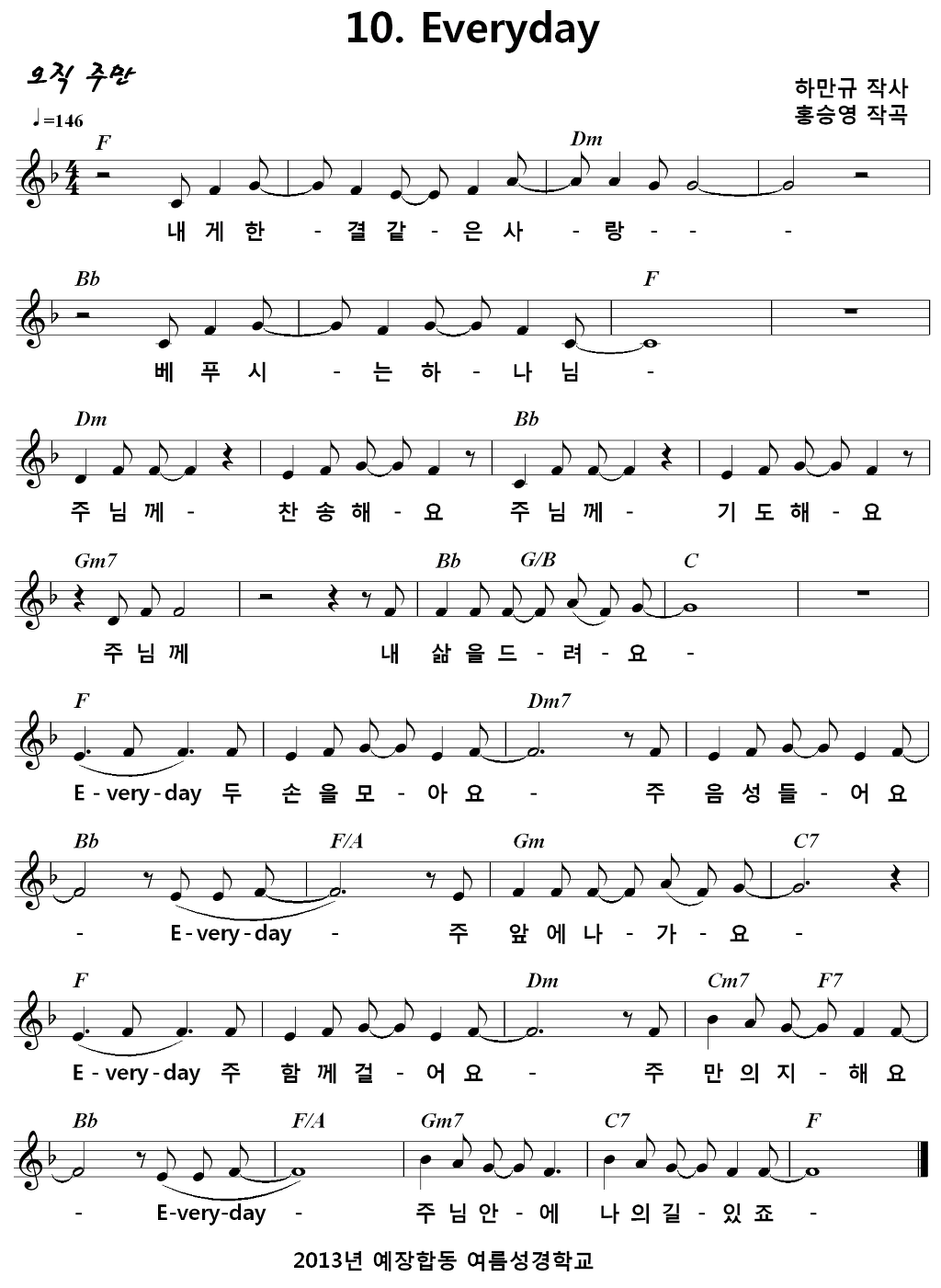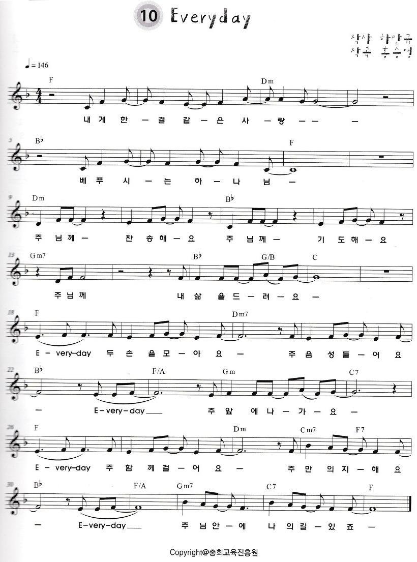 [스크랩] [CCM악보] Everyday / 내게 한결 같은 사랑 [홍승영, 2013년 예장합동 여름성경학교, F키]
