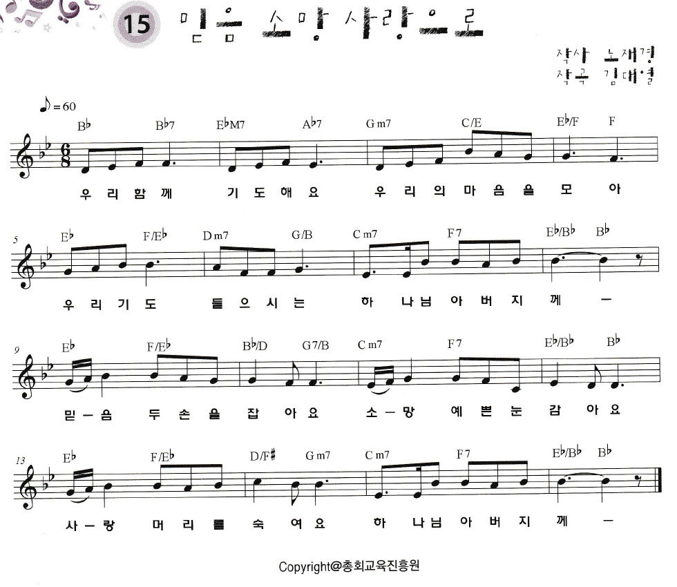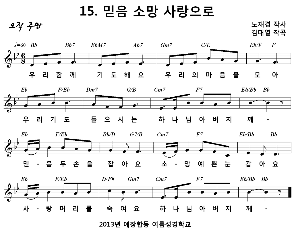 [스크랩] [CCM악보] 믿음 소망 사랑으로 / 우리 함께 기도해요 [김대열, 2013년 예장합동 여름성경학교, Bb키]