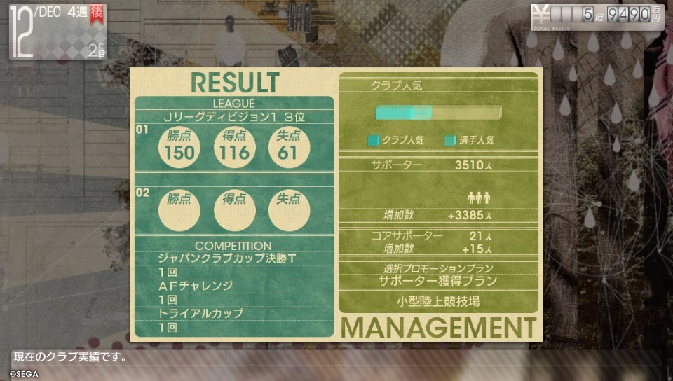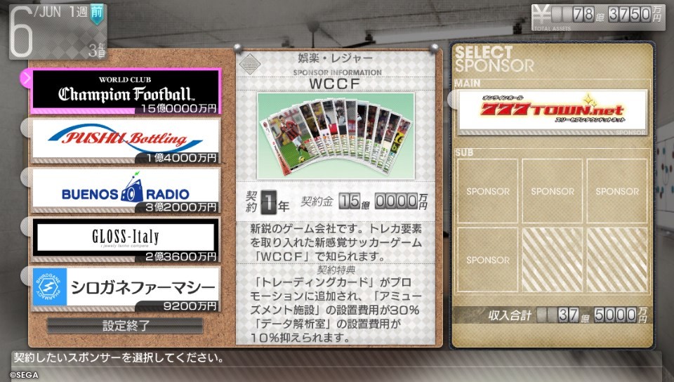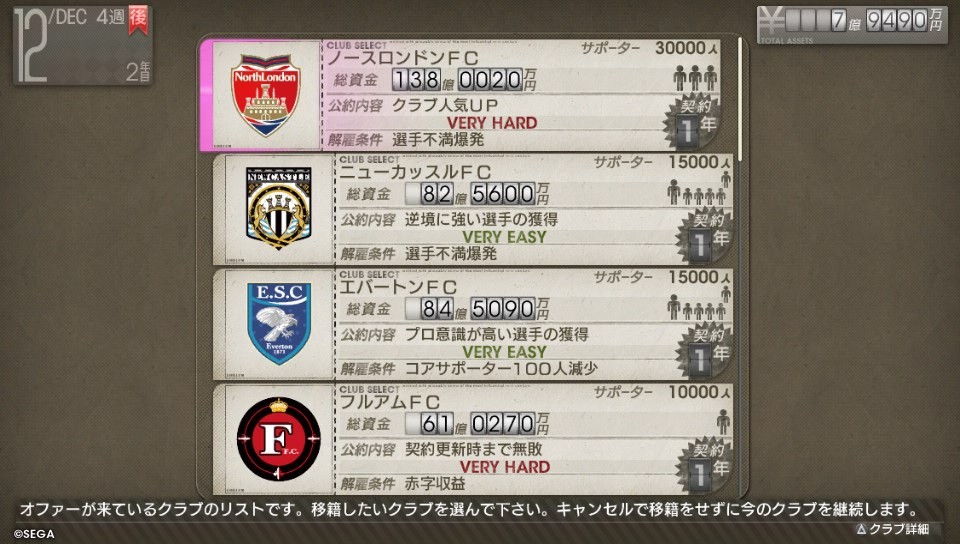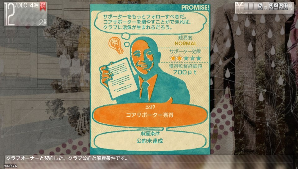 작성자A-Rod 작성시간 13.10.12 전작이랑 비슷하네요. 그래서 계약내용 어려운거 하시면 안 됩니다. 쉬운것만 하시고, 내용이 100% 이해 되시는것만 하시는게 좋아요. 이것만 지키면 거의 안 짤리죠. 서포터 저거 아마 100명가량 늘려야 성공일거에요. 근데 스폰서 금액이 대폭 증가 했네요. 전작에는 뭐 같이 줘서 결국 관중동원으로 벌어 먹어야 되었는데..