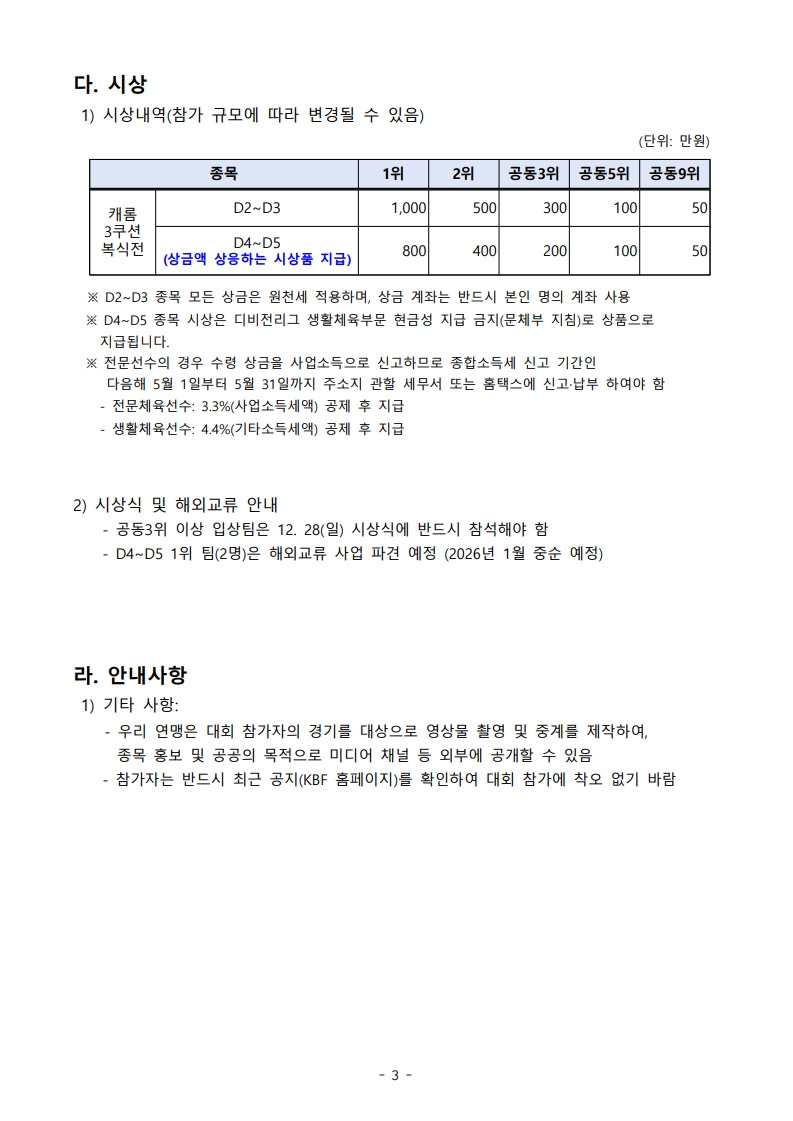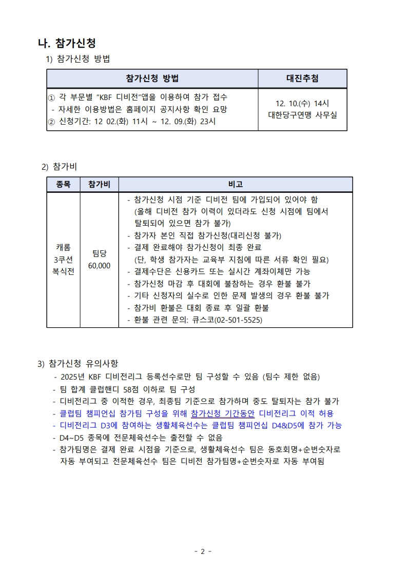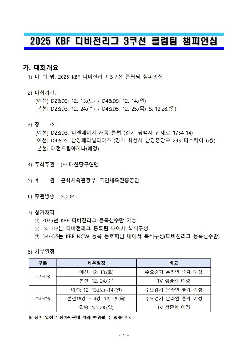 2025 KBF 디비전리그 3쿠션 클럽팀 챔피언십 작성자조국현|작성시간25.12.02|조회수481 목록 댓글 2 글자크기 작게가 글자크기 크게가 다음검색 현재 게시글 추가 기능 열기 북마크 공유하기 신고 센터로 신고 댓글 댓글 2 댓글쓰기 답글쓰기 댓글 리스트 작성자박현규 | 작성시간 25.12.02 박현규 / 조수현김휘동 / 정연철서성호 / 김현호신청합니다~ 답댓글 작성자조국현 작성자 본인 여부 작성자 | 작성시간 25.12.03 여기 신청하시는거 아닙니다~ 댓글 전체보기