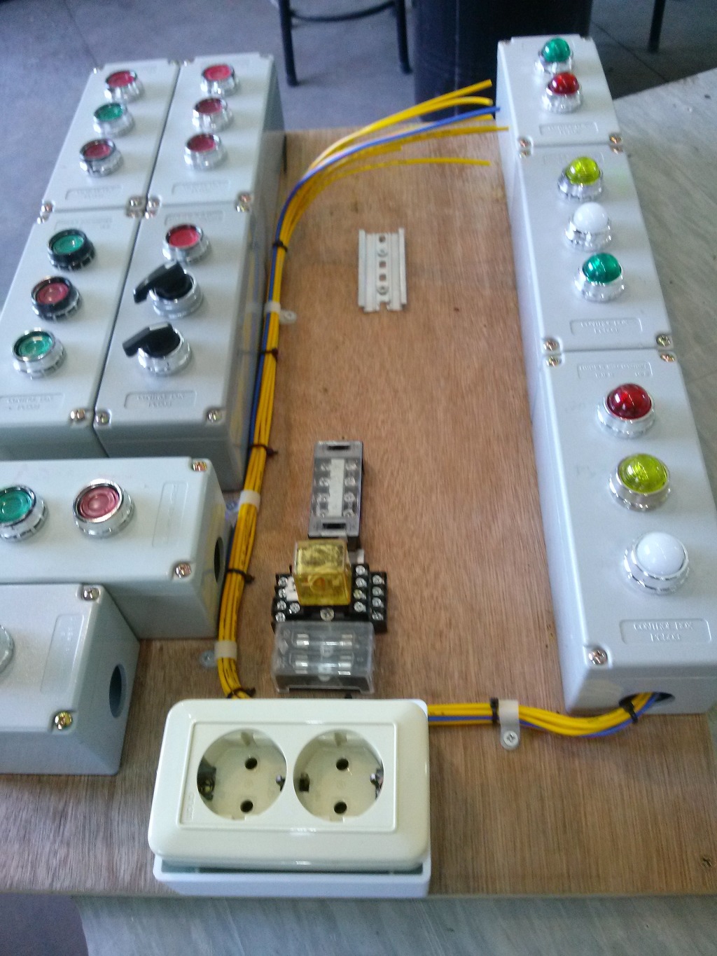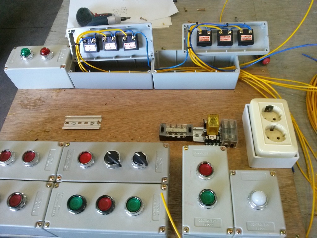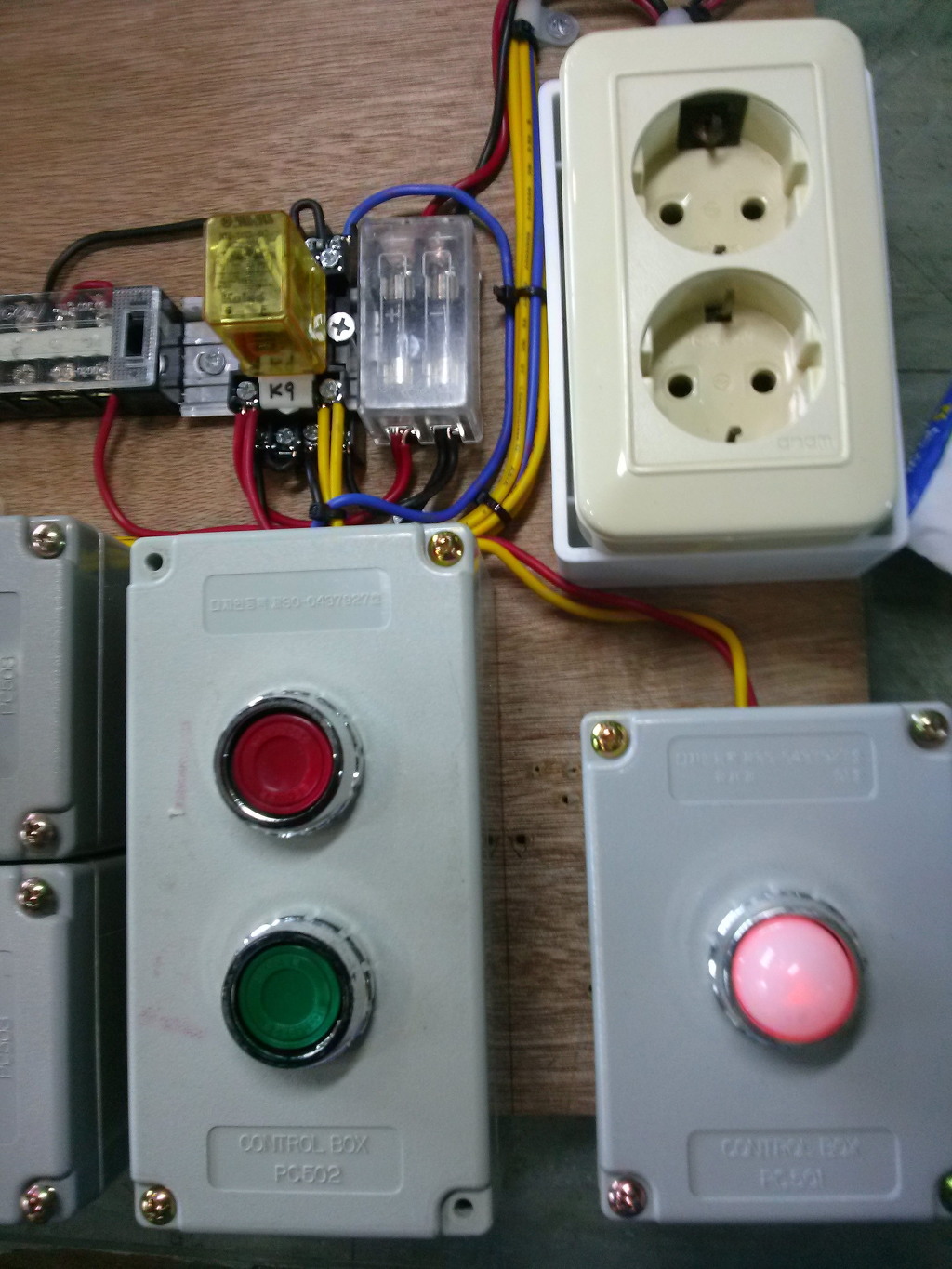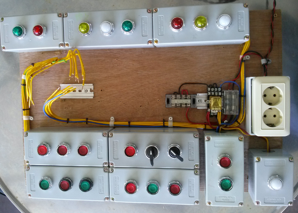 - 연습이 끝나면 녹색 버튼을 꾸욱 누르면 전원이 차단됩니다. 전류 용량이 적기 때문에 14P RELAY 3회로 접점을