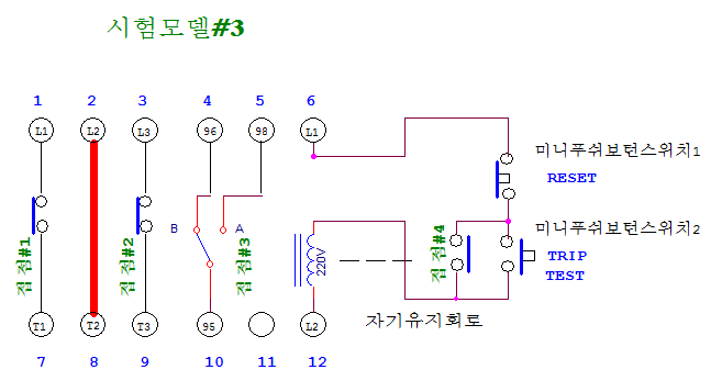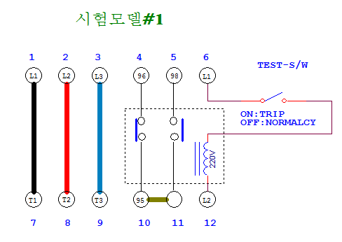 - 주 접점 3개 모두를 ON/OFF 할 수 있지만 실제 EOCR에서도 2접점만 제어하므로 굳이 그렇게 까지 할 필요는 없다.