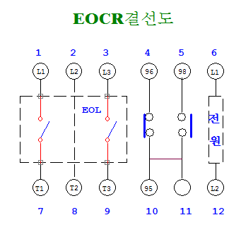 - EOCR은 과전류가 흐를 경우 TRIP되어 전원을 차단하며 경보를 울리는 구조로 되어있다.