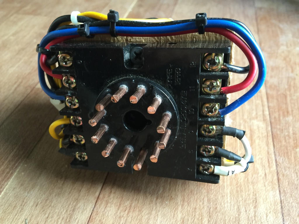 그래서 기능사 실기시험 때 굴러다니는 220V용 릴레이와 12PIN 소켓만 가지고 만들어 유용하게 사용했다.