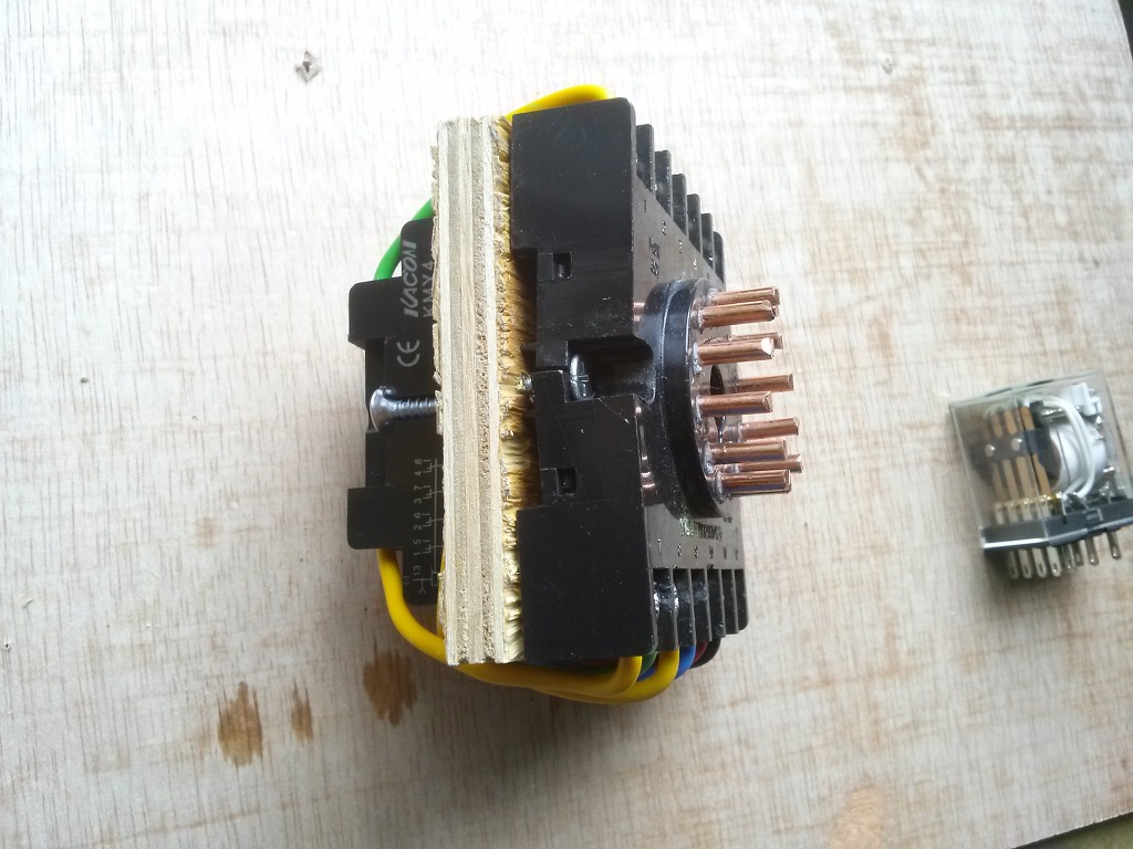 - 고장난 EOCR 케이스 가 없는 경우는 위의 방법으로 소켓 베이스를 만들고 나무판 위에 14핀 릴레이와 보턴 스위치를 적절히