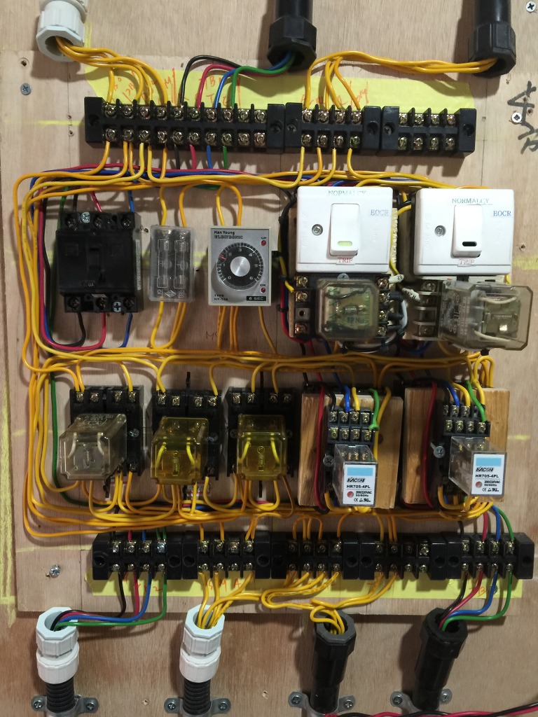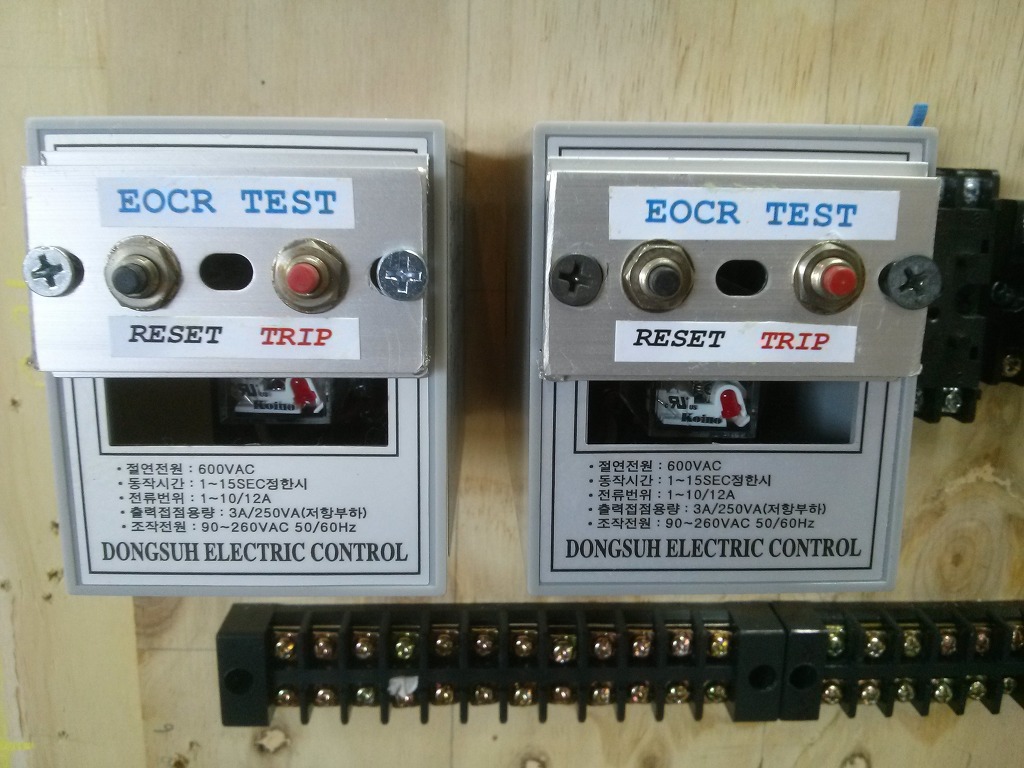 - 고장난 EOCR 의 내부를 제거하여 버리고 14핀 릴레이를 내장하고 커버에 푸시보턴 스위치를 장착하는 식으로 개조했다.