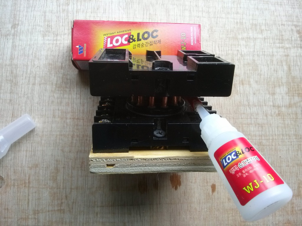 다음은 핀을 박고 강력접착제로 고정해야 하는데 여기서 조심스럽게 해야 한다. 정확하게 위치를 맞추지 않고 본드칠을 하면