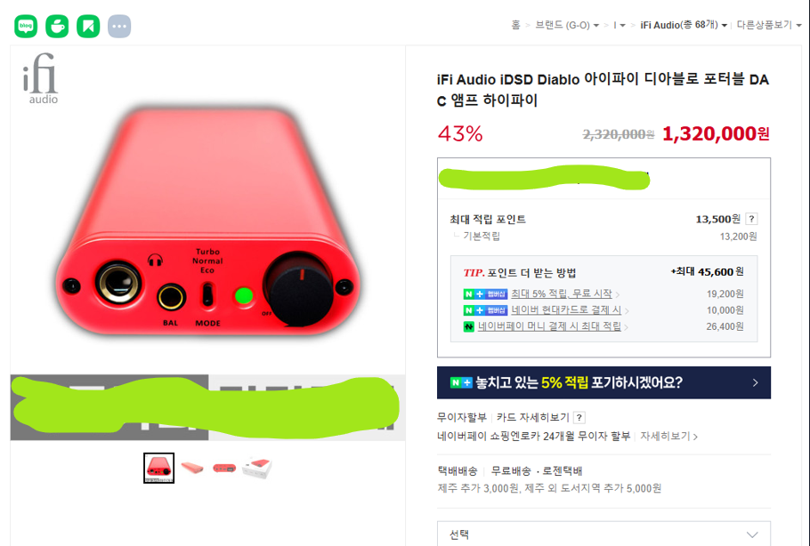 리뷰 등에서 보면 놀라운 수준이라고들 하여 떠들썩하여 판매가격을 알아보니 무려 130만원대더라. 뭐야 휴대용 dac가 130만원이라고 이런 걸 사는 사람이 있을까 했는데 시판하자마자 동이 났다고 한다. 참 우리 나라 사람들은 귀가 많이 얇은 것 같다.