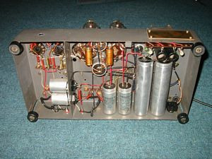 Of course an E88CC or an ECC83 would work fine, but these would be a sacrilege in an RL12P35 amp. Classic driver tubes are: EF12, RL12P10 or ECF11. For availability and socket reasons and good sonical experience (Klangfilm KLV-204) I decided to use a triode connected EF12, which works at a B+ of 200V with a 2.5kOhms cathode resistor.