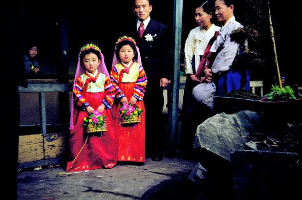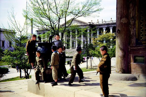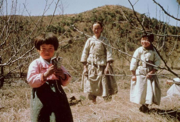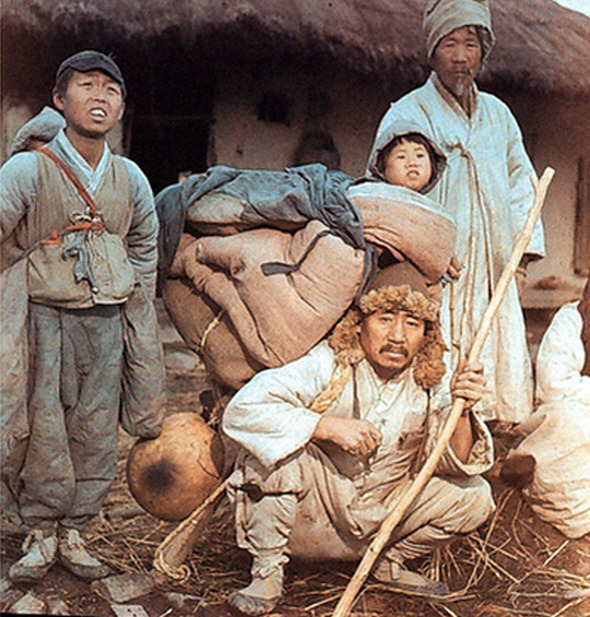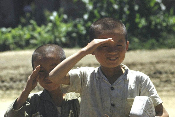 전쟁중이라 옷감이 흔치 않던 시절,미군 담요로 만든 옷을입고 덕수궁에 놀러 나온소년들.1952년초