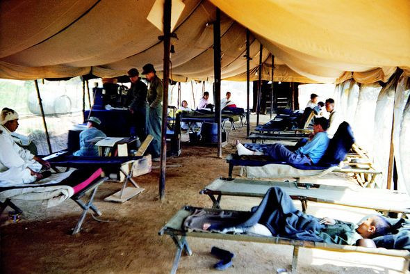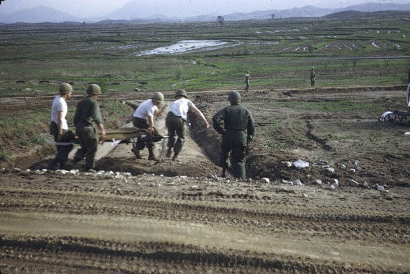미 해병대 야전병원에서 민간인들이 치료를 받고 있다.(1952년 가을)