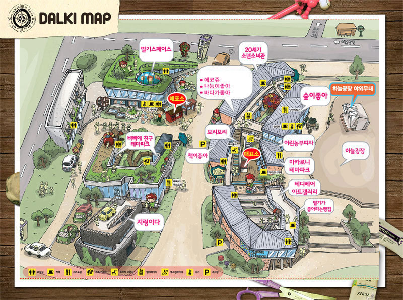 테디베어 아트갤러리, 20세기소년소녀관, 딸기스페이스, 빠비에친구데마파크 등이 위치하고 있다.