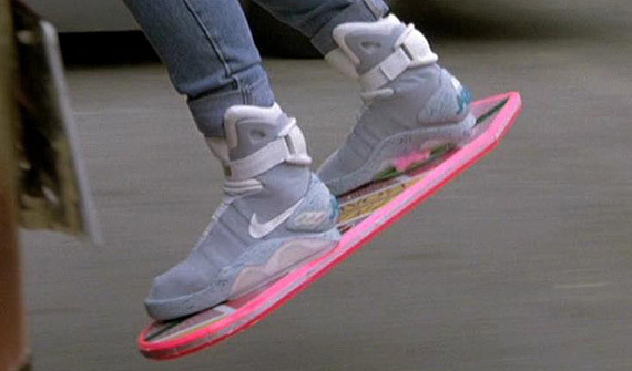 영화 백 투더 퓨처에서 마티 맥플라이(마이클 J 폭스)가 1985년에서 2015년으로 시간여행을 왔을 때 신었던 자동 신발로