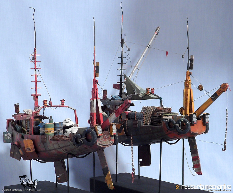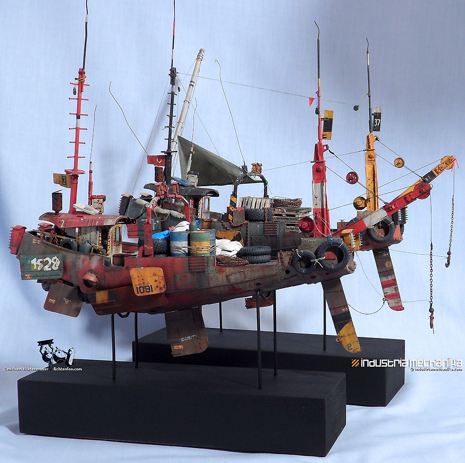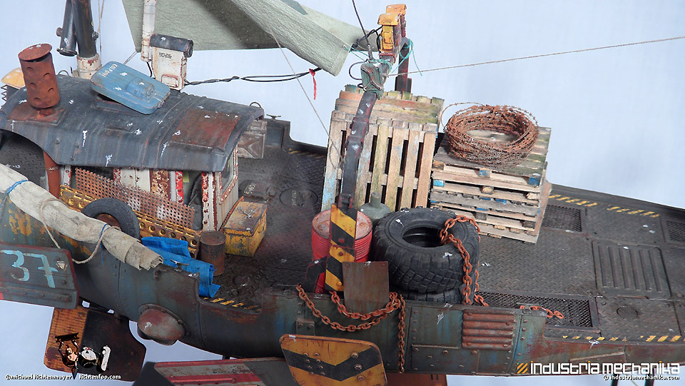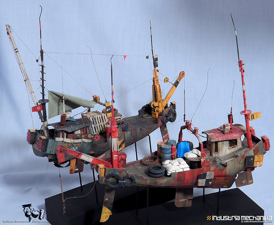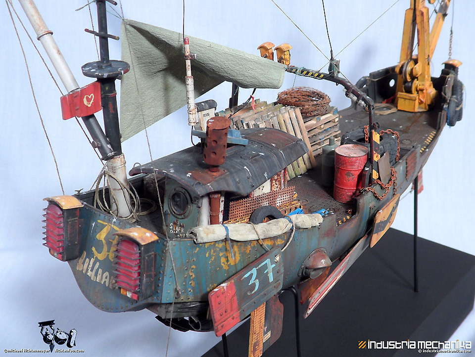 1/35 스케일이며 전반적으로 어선의 모습을 하고 있는 스팀펑크 스타일의 운송기기형 메카닉이다.