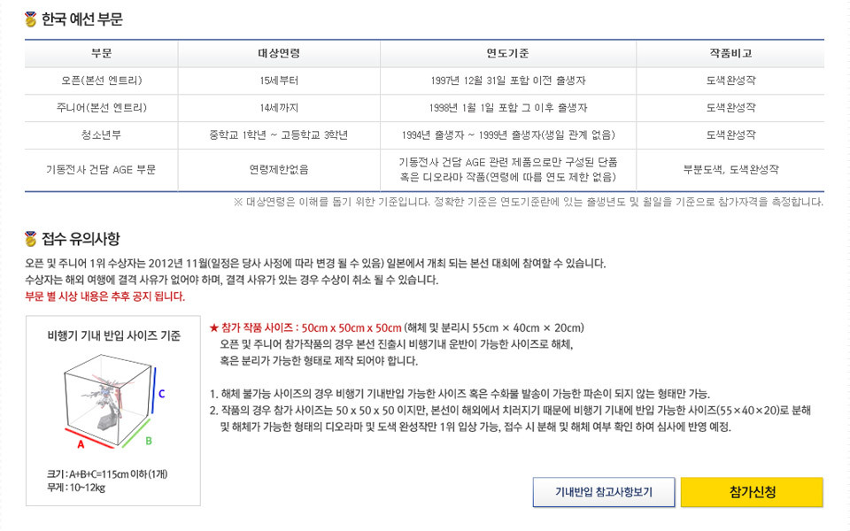 작품 접수는 해당 홈페이지에서 받고 있으니 궁금한 점은 반다이코리아에 직접 문의하시길 바란다.
