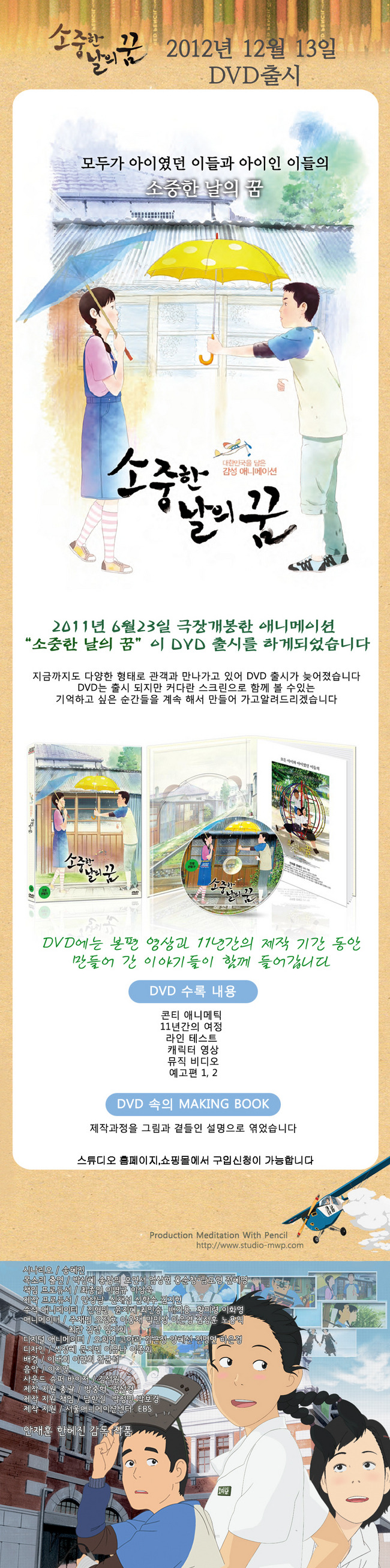 연필로 명상하기 스튜디오에서 만든 소중한 날의 꿈이 DVD로 발매되었다.