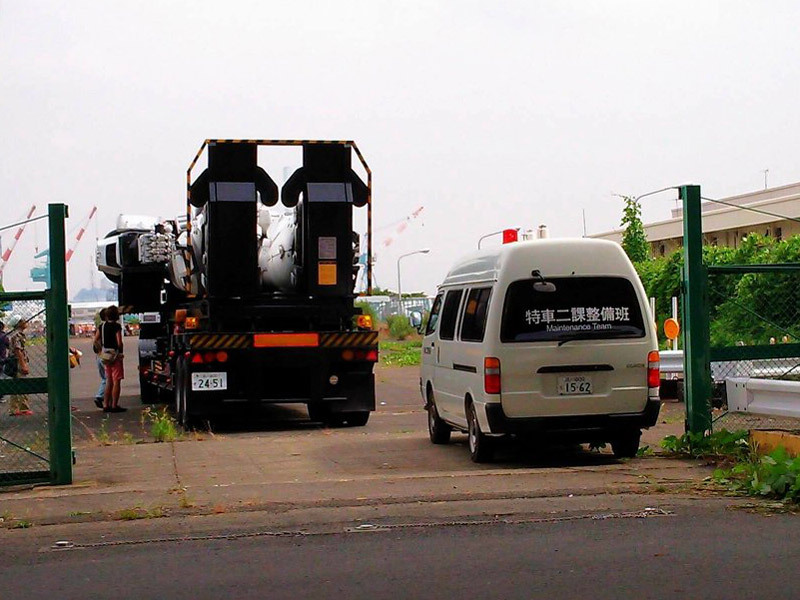 원작 애니에서처럼 트레일러에 눕혔다가 들어올리는 리프팅 장면도 촬영중인 것 같다.
