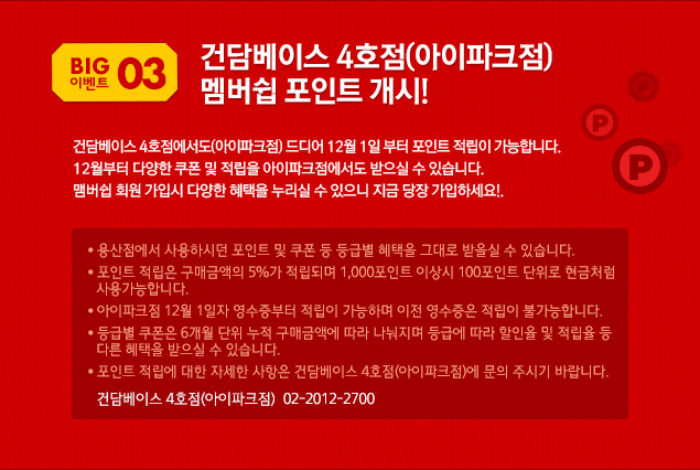 그간 건담베이스 4호점에서는 적립이나 쿠폰 적용이 되지 않았는데 용산전자랜드점이 문을 닫으면서 이관된 것 같다.