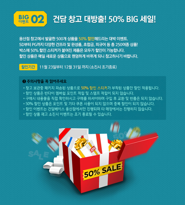 50% 할인행사는 용산전자랜드 건담베이스에서만 진행되는 할인행사이다.