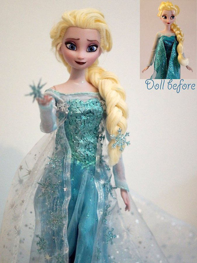 바비인형을 개조하고 옷을 자작하여 엘사로 커스텀해준 작례도 등장했고