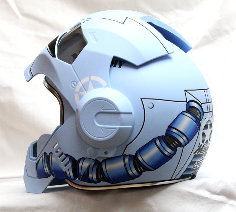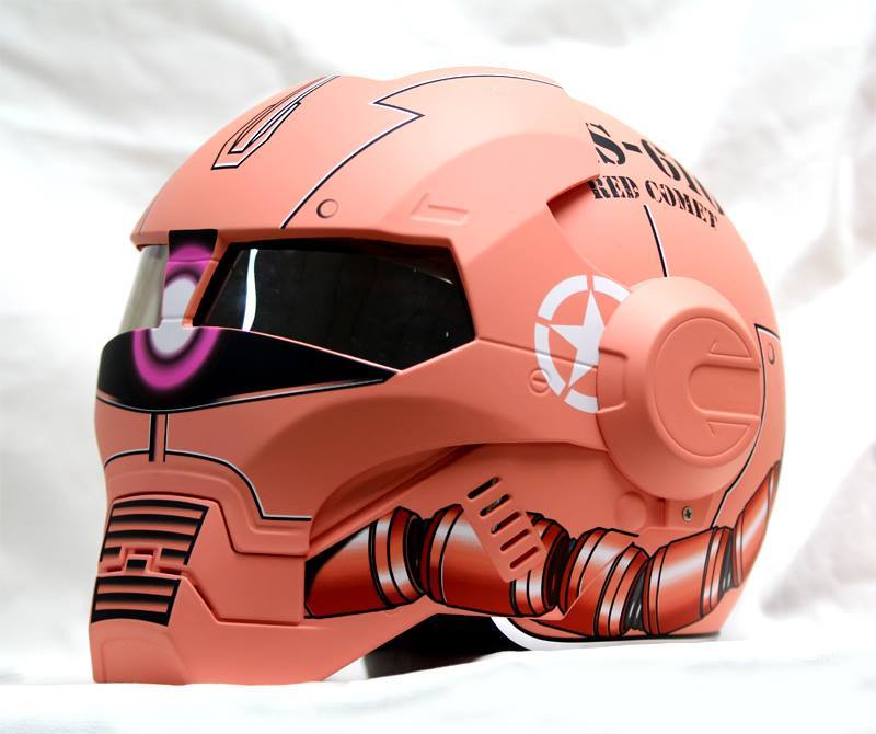 완전히 얼굴을 감싸는 형태로 아이언맨 헬멧에 자쿠를 갖다 붙인 인상이 더 강하다고나 할까...?