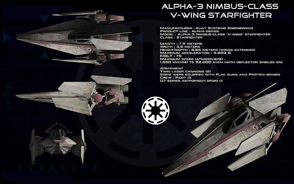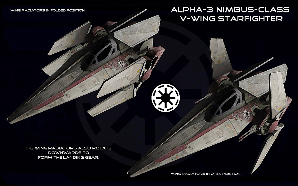 제국이 막 성립되던 시기라서 공화국 스타일 디자인이 그대로 남아 있는데, 날개가 V자 모양으로 접힌대서 V-WING이라 했단다.
