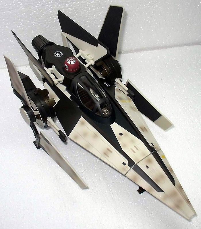 이전에 보여 드렸던 제다이 스타파이터와 비슷한 크기를 하고 있으며, 설정처럼 좌우 날개가 V모양으로 움직인다.