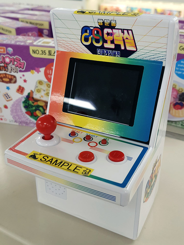 진짜 말 그대로 80년대 오락실에서 보던 비주얼 그대로 축소하여 책상 위에 얹어 놓고 얼마든지 땡기도록 해논 것이다.