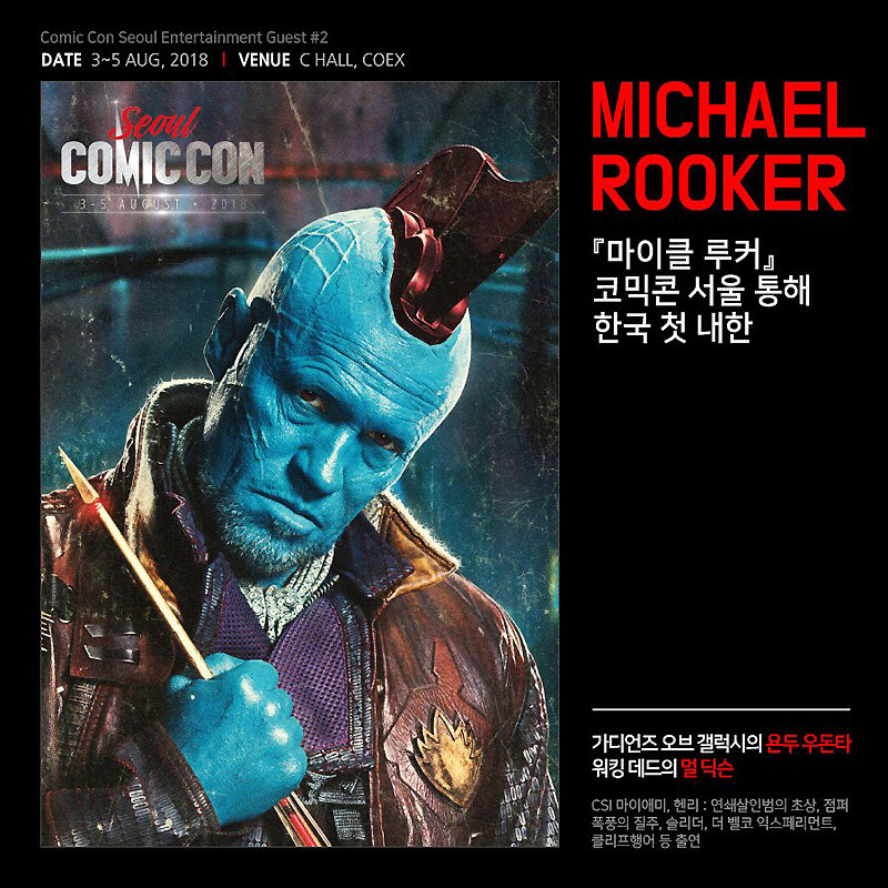 [행사 정보][서울코믹콘] Guardians of the Galaxy 가디언즈 오브 더 갤럭시 Yondu 욘두 우돈타 배역의 Michael Rooker 마이클 루커, Comic Con Seoul 서울코믹콘 내한