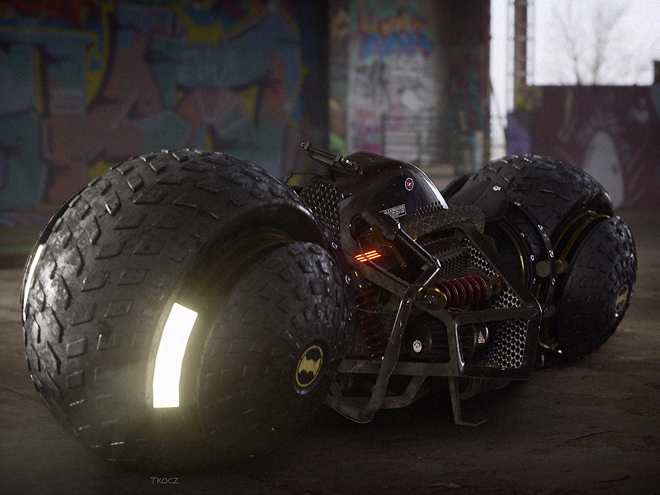 배트맨 다크나이트의 배트포드에다가 영화 트론에 등장했던 라이트사이클을 이식한 것처럼 보인다.