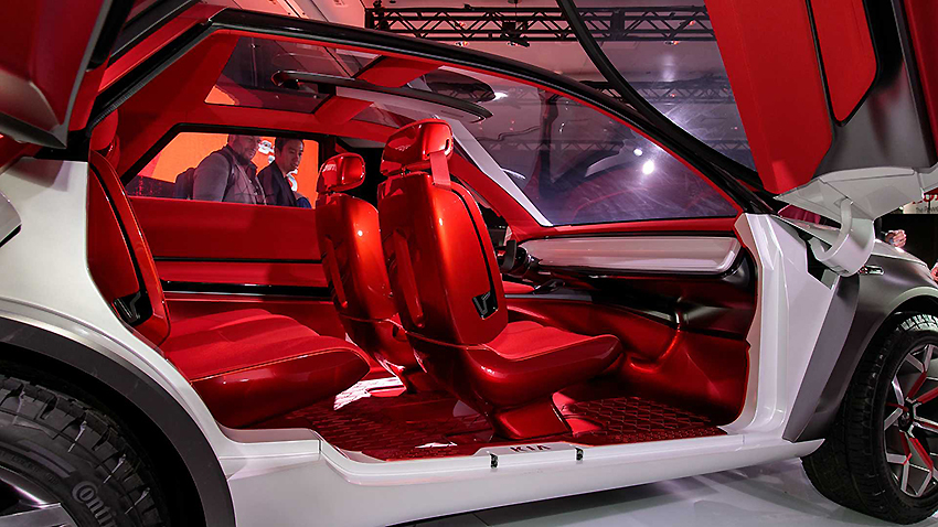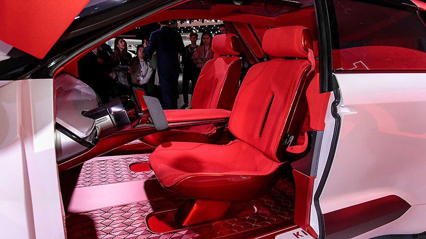 컨셉트카라서 사이드미러가 없고 대시보드에 장착된 와이드한 터치스크린에 영상이 투영되는 방식이며