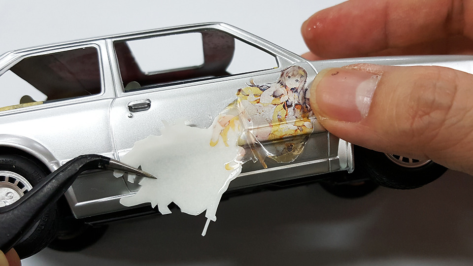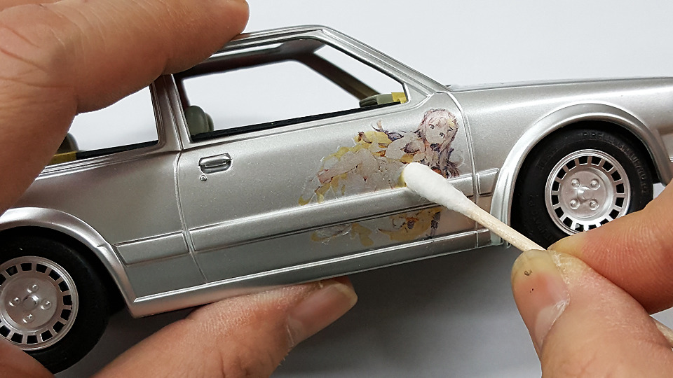 면봉이나 티슈로 꾹꾹 눌러서 데칼과 부품 사이에 공간이 남지 않도록 확실하게 점착시켜줘야 하는데, 그냥 얹어놓기만 하더라구요.