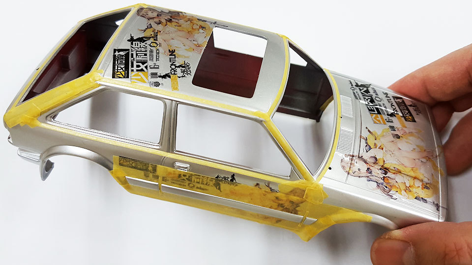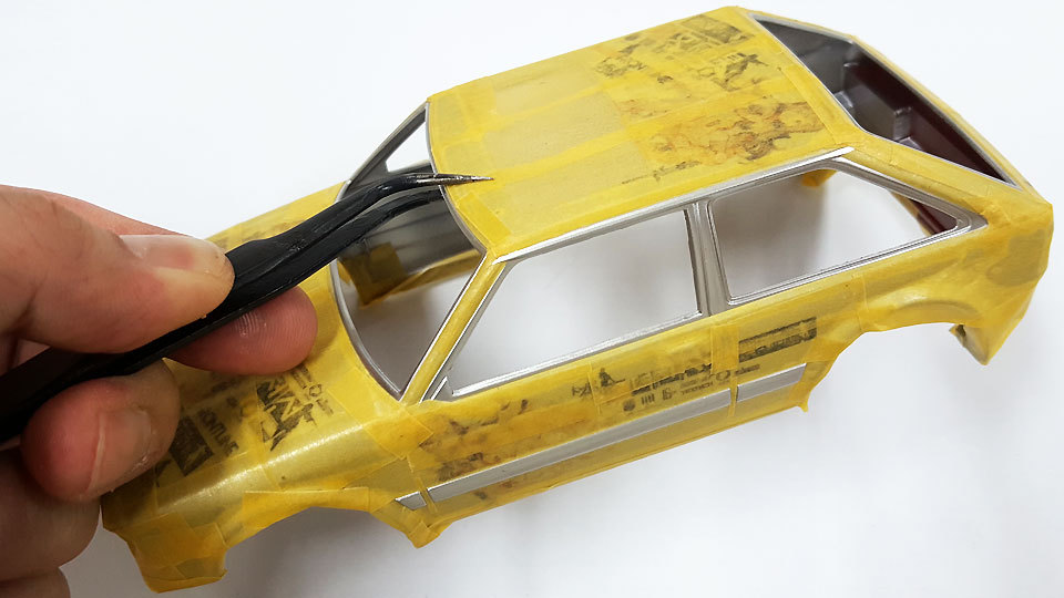 차체에 데칼 붙이고 광택 작업이 끝난 후에 윈도우 실링 라인과 러버가드 라인을 마스킹해서 칠해줘야 최종적으로 완성되는데요