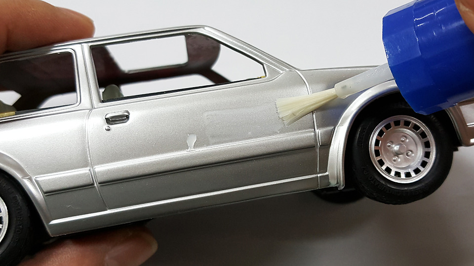 어렸을 때 은색 포니 승용차가 그렇게 멋스러워 보이더라는 기억이 떠올라서, 그래서 블래 서페이서를 먼저 칠했습니다.