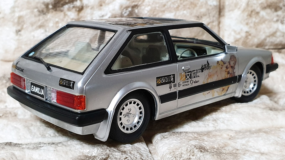 원래 트렁크 리드 쪽에 마쓰다 로고와 파밀리아 로고가 양각으로 새겨져 있었는데요, 전부 밀어 버렸습니다.