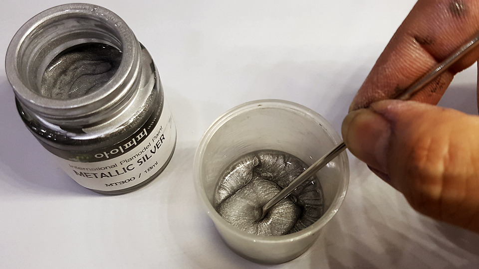 그 위에 메탈릭 실버를 살짝 얹어 줬는데요, 굳이 뭉갤 필요가 없습니다. 그러고 나서 유광 클리어를 덮어 줬네요.