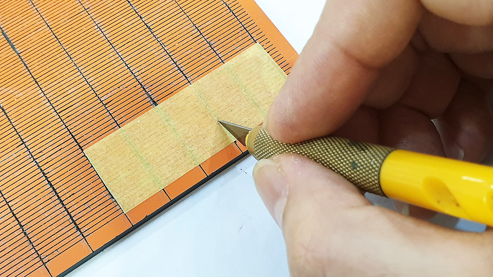 마스킹테이프를 가늘게 잘라서 테두리로 먼저 붙여준 후, 그걸 완료하고 나면 나머지 공간을 차곡차곡 붙여가는 거죠.