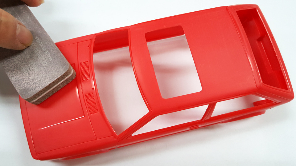 파팅라인이 정말 옛스러운데요, 다행히 차체가 곡면이 별로 없기 때문에 사포로 연마해주는데 그리 어렵지는 않았습니다.