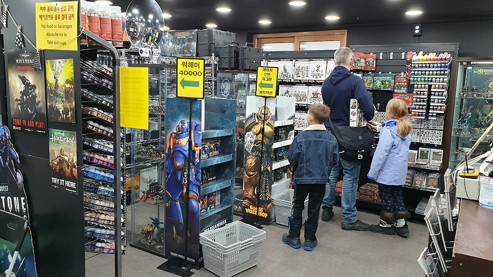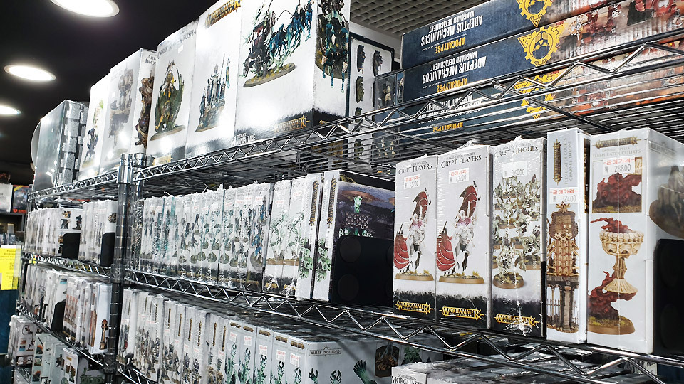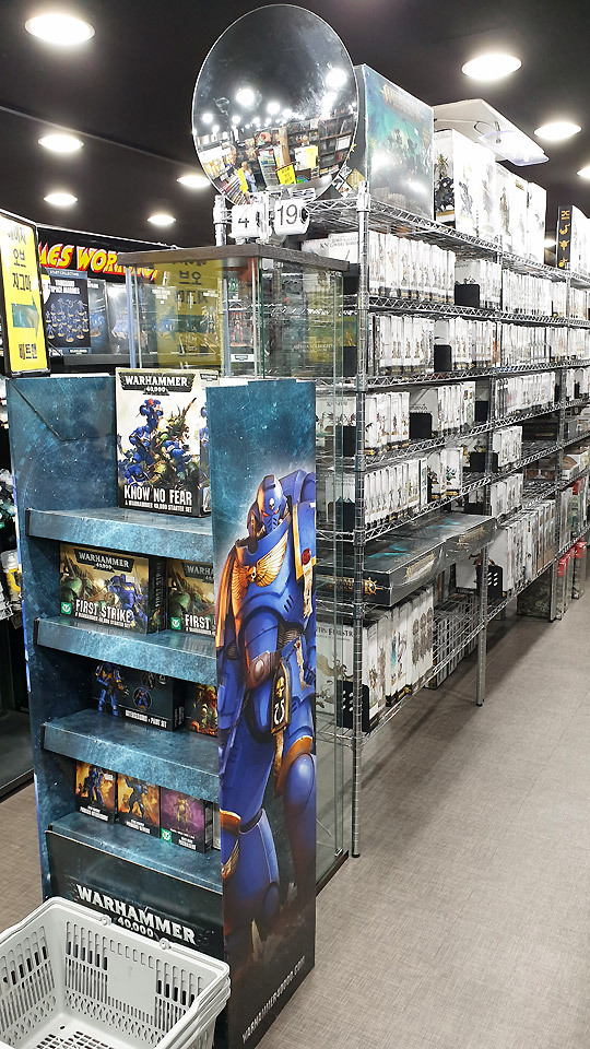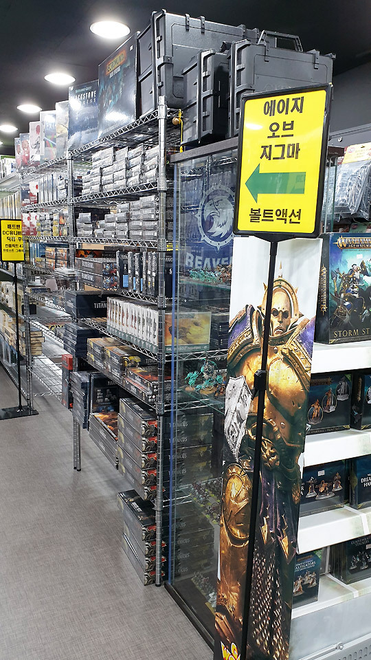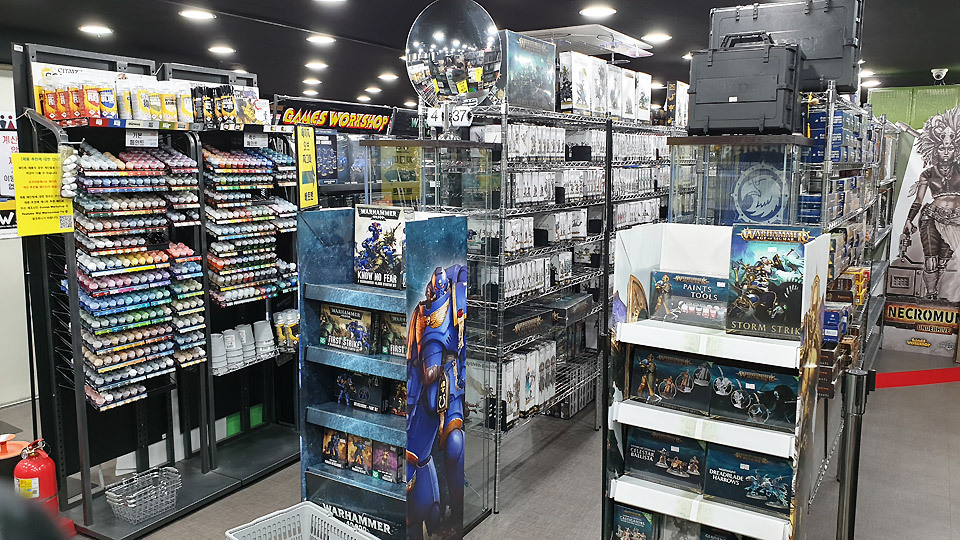 그래서 매대 옆으로 게임 테이블을 준비하여 그 안에서 맘껏 플레이할 수 있도록 하는 것이 워헤머 게임의 매력임다.